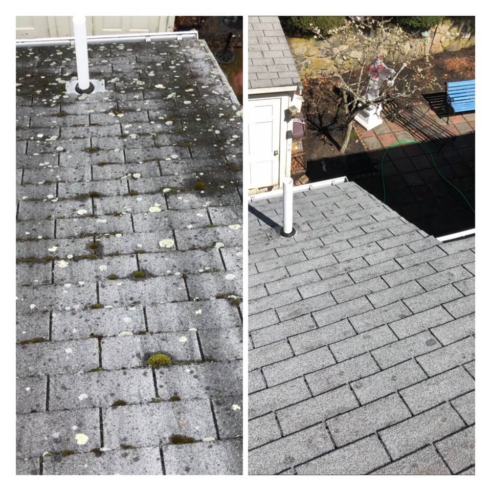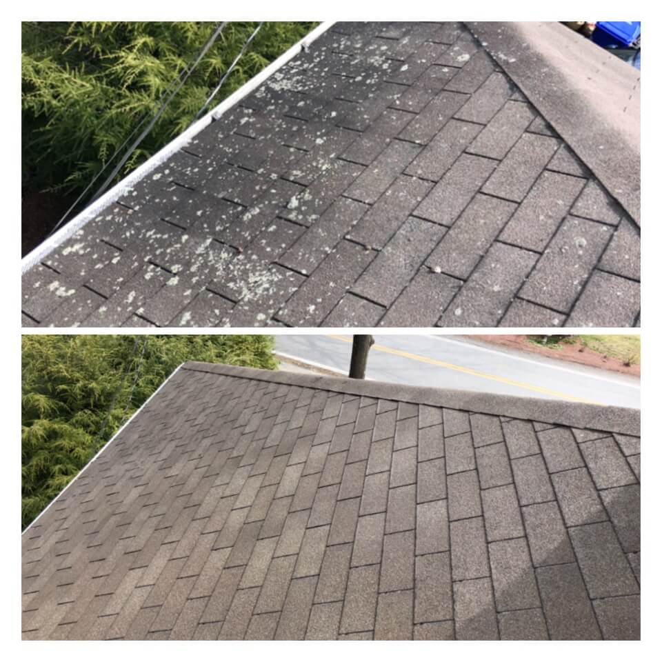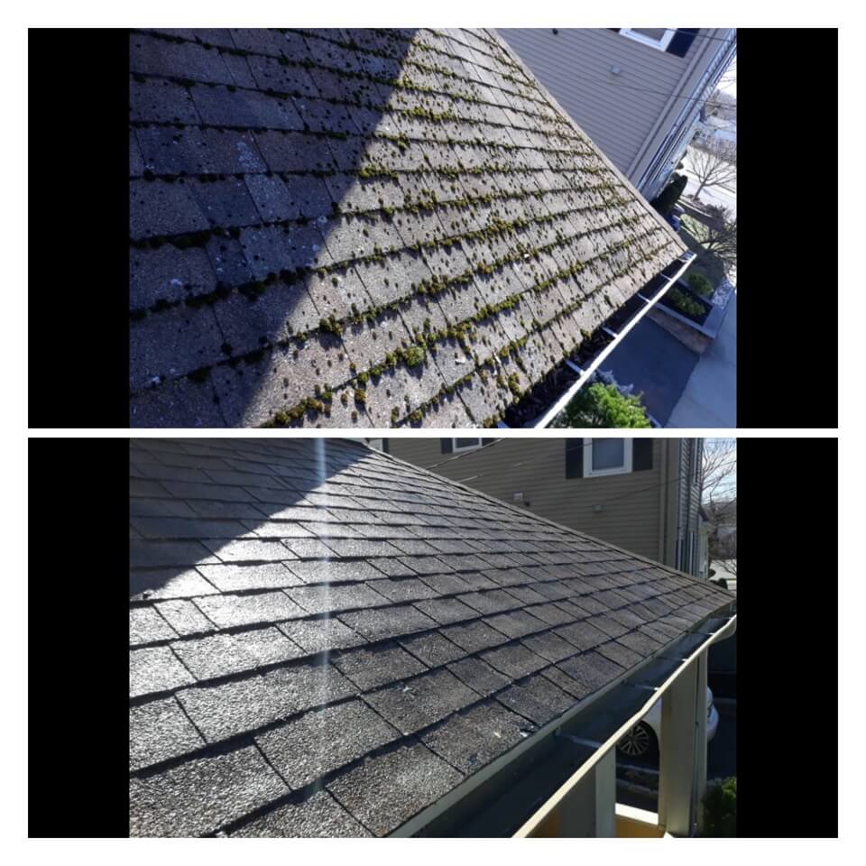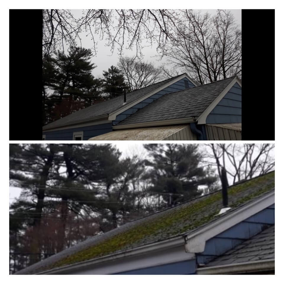 HiCleaners is the most experienced company in Derry, NH that deals with roof washing and roof soft washing. All of our employees are trained to recognize precise solution mixing ratios to provide you with the safest and most effective soft washing service. Roofs are a commonly neglected part of a house due to the fact that most people don’t have ladders to access it, so it is very easy to just leave it alone and forget about problems that may start to arise. Just like many home owners, discoloration and small bits of moss on a roof can be overlooked because of the misconception that it is just aesthetic. However, it isn’t just aesthetic, the moss slowly lifts the granules off the shingles which in turn shorten the life of the shingle. The moss also spreads, just like any bacteria if it is left alone for too long, it can quickly become a problem that spirals out of control. Call HiCleaners for a free quote, we only use the most advanced eco-friendly solutions and equipment to make sure the job is done right, for the safety of the employees, your plants, grass, pets, and children.