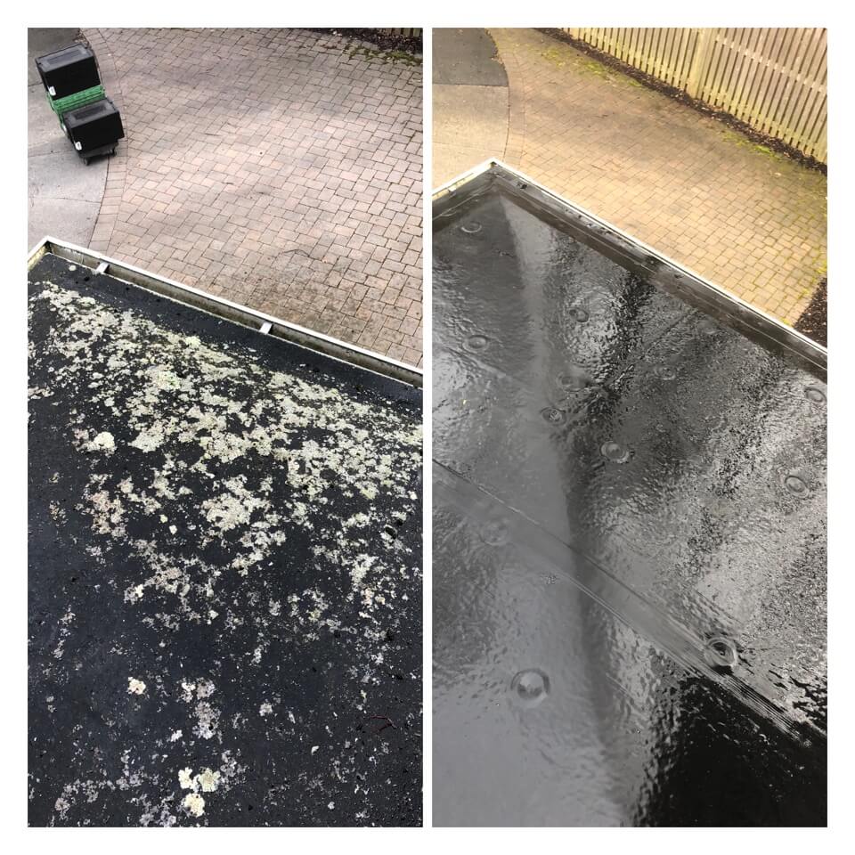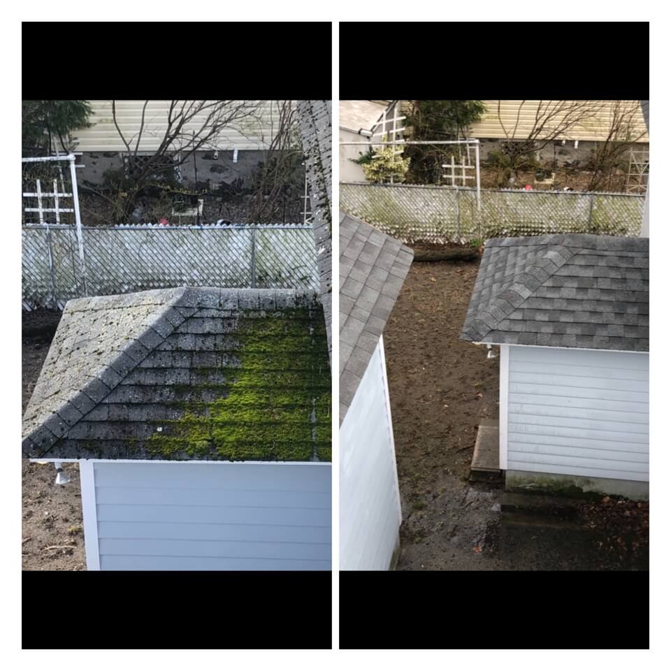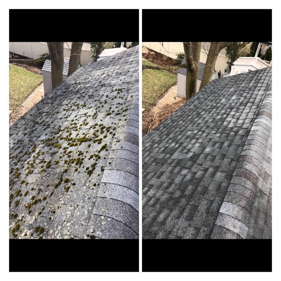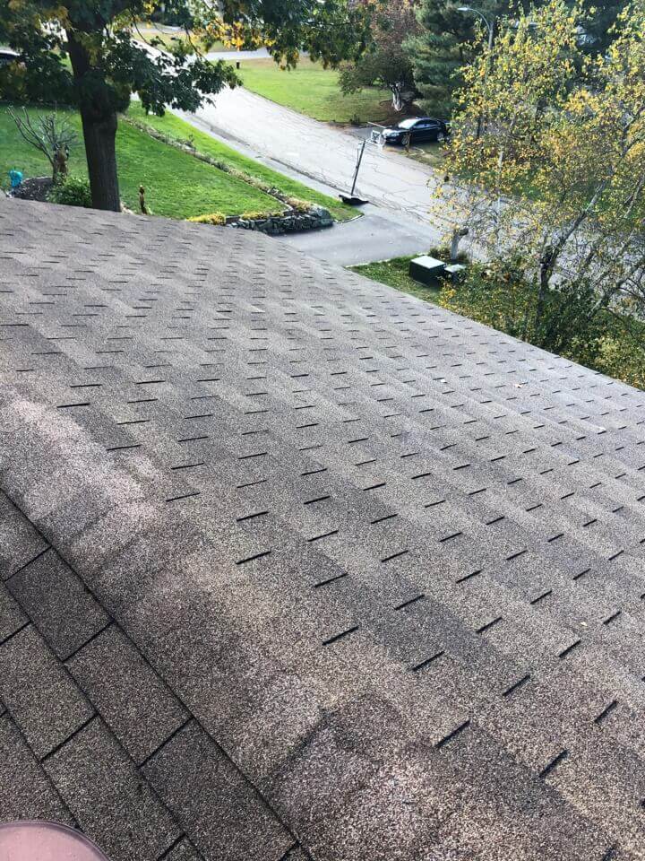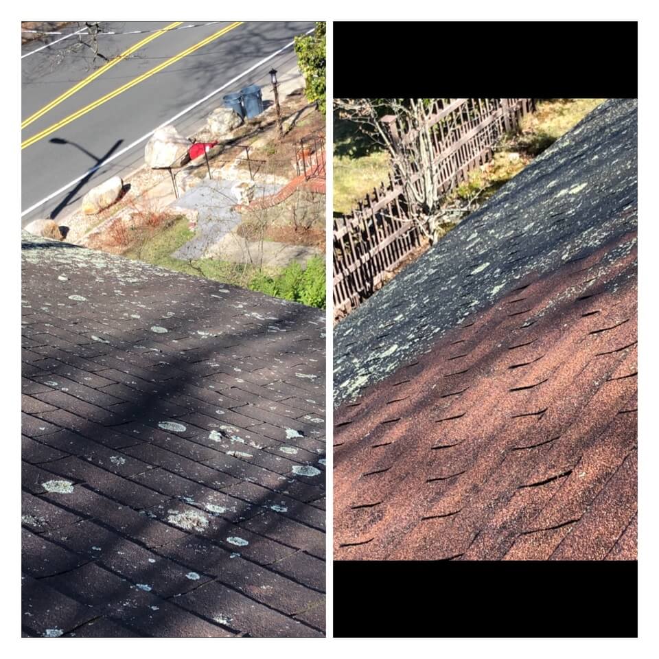 HiCleaners is the most experienced company in Derry, NH that deals with roof washing and roof soft washing. All of our employees are trained to recognize precise solution mixing ratios to provide you with the safest and most effective soft washing service. Roofs are a commonly neglected part of a house due to the fact that most people don’t have ladders to access it, so it is very easy to just leave it alone and forget about problems that may start to arise. Just like many home owners, discoloration and small bits of moss on a roof can be overlooked because of the misconception that it is just aesthetic. However, it isn’t just aesthetic, the moss slowly lifts the granules off the shingles which in turn shorten the life of the shingle. The moss also spreads, just like any bacteria if it is left alone for too long, it can quickly become a problem that spirals out of control. Call HiCleaners for a free quote, we only use the most advanced eco-friendly solutions and equipment to make sure the job is done right, for the safety of the employees, your plants, grass, pets, and children.
